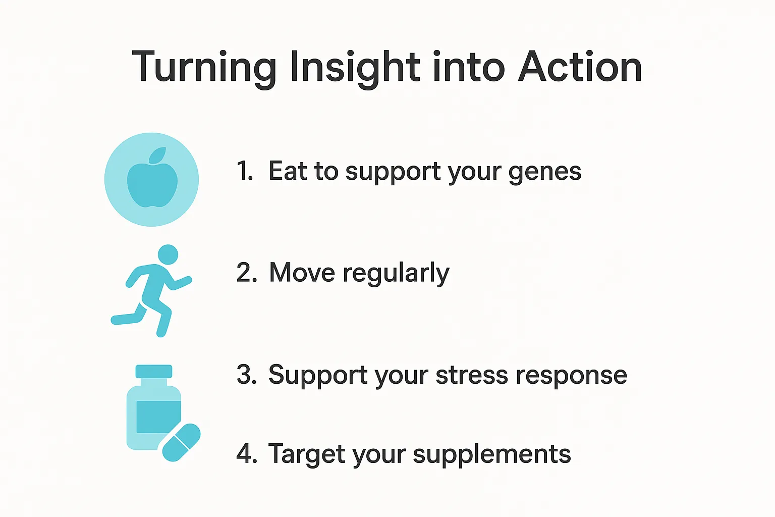 - Target your supplements: Work with a practitioner to personalize nutrient and hormone support based on your genetic tendencies.